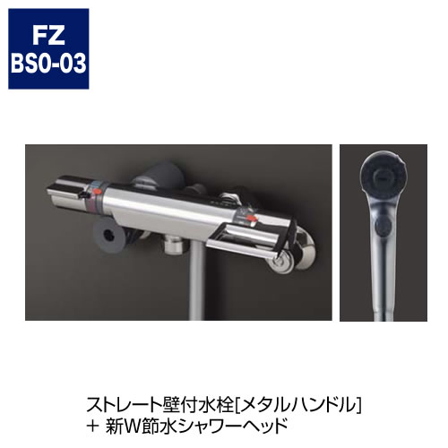 ストレート壁付水栓[メタルハンドル] + 新W節水シャワーヘッド